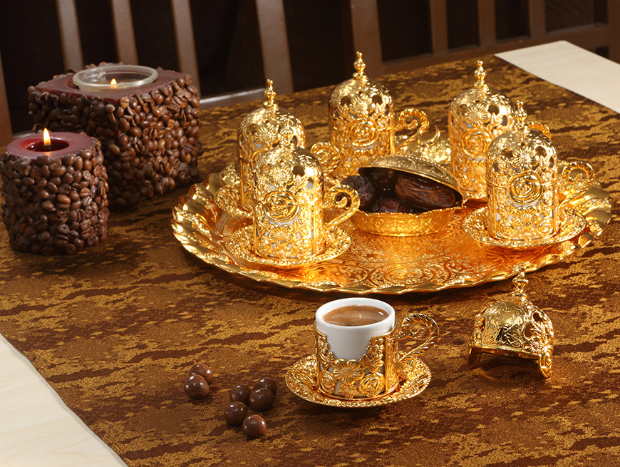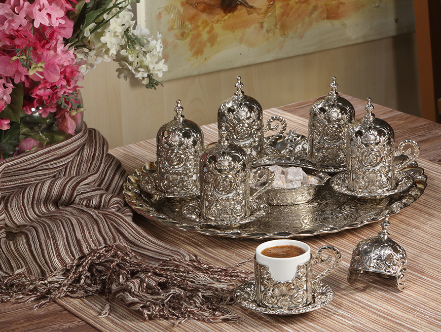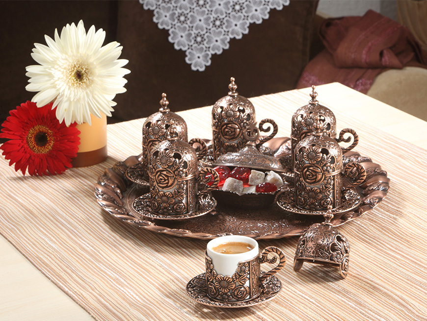 Ürün-Adı: 6 lı Kahve Tk. Yeni Gülllü Yuvarlak Tepsi Füme-Gümüş-Altın-Bakır